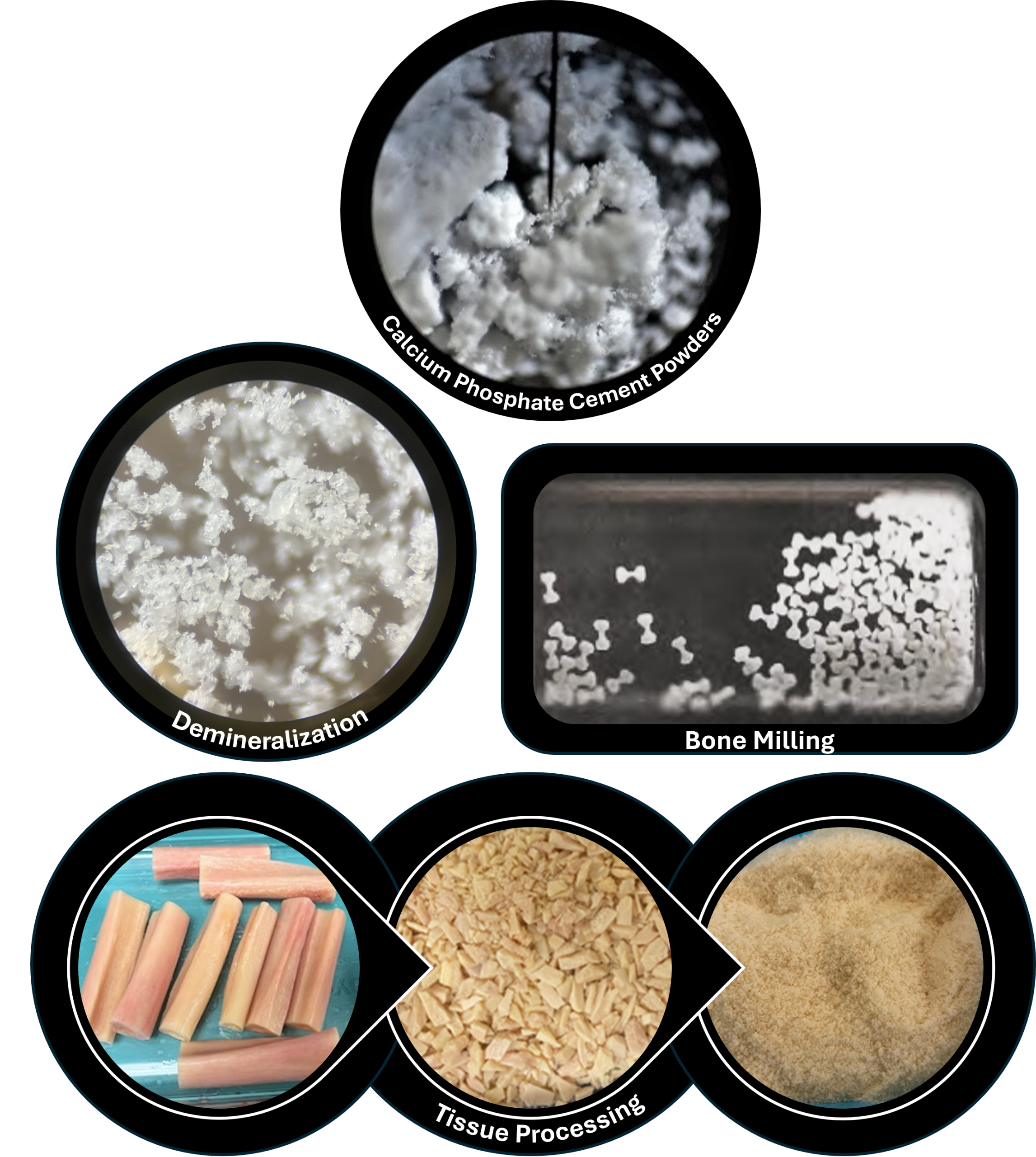 - Biomaterials Development: Experience in calcium phosphate cements and biologic-based systems designed to support bone regeneration and healing.